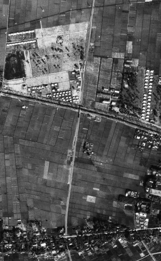 写真中央を横切る玉川上水の北側、現鷹の台駅周辺の林が伐採され開発が始まった。