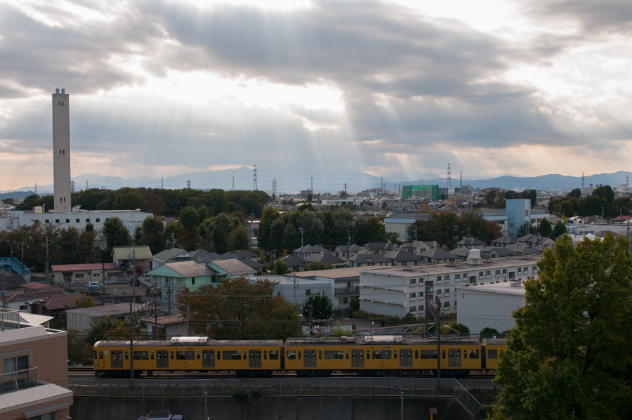 3000系通過時には雲が消え、光芒がかなり薄くなってしまい残念。