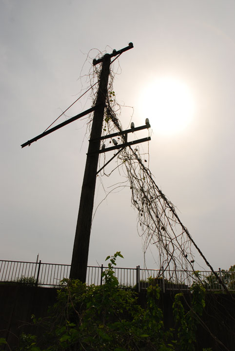 八瀬大橋手前の架線柱。安比奈線後半の架線柱はみんなこんな感じ。