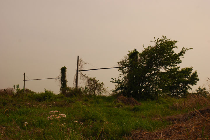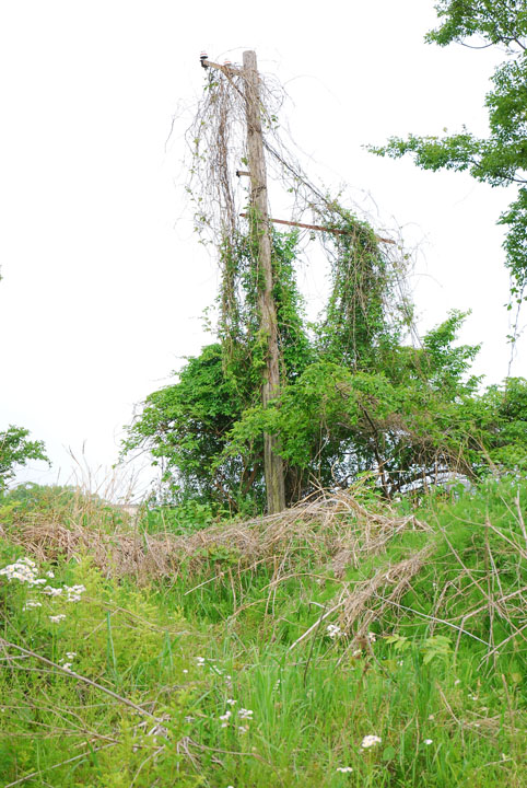 安比奈駅構内の架線柱。自然は恐ろしい。