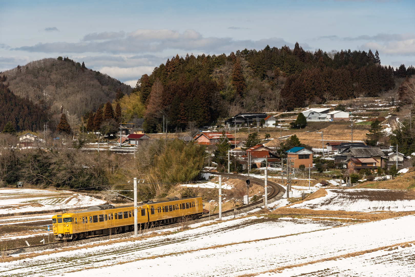 桜×国鉄色、誰かこの構図で流し撮りしてないかな。おすすめしたい構図。
