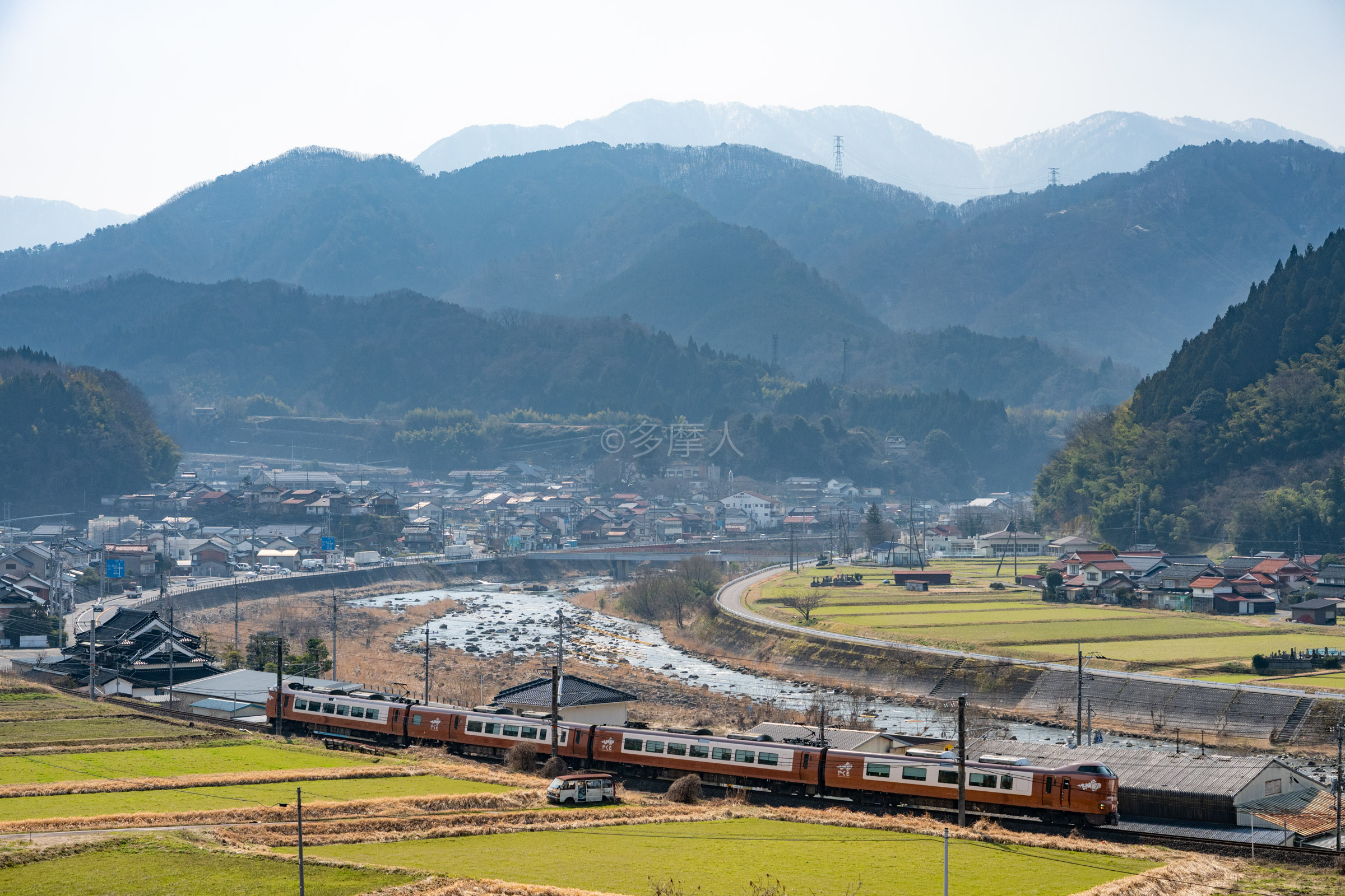 黒坂要害城跡から。タイミング、構図が絶妙に悪い。
