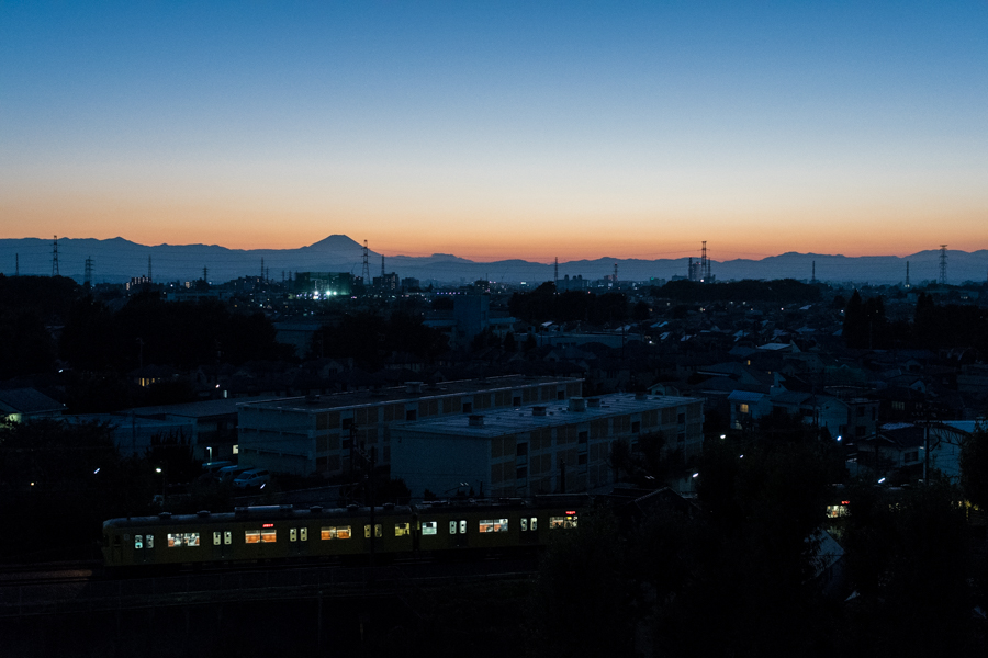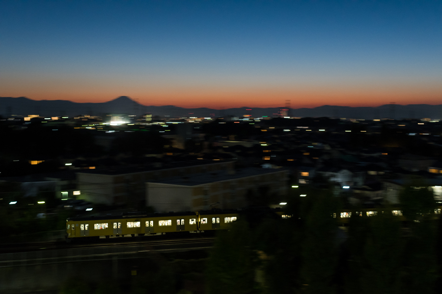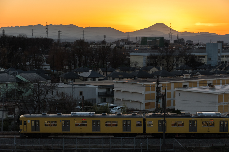 恋ヶ窪で降りて折り返した電車を富士山バック.