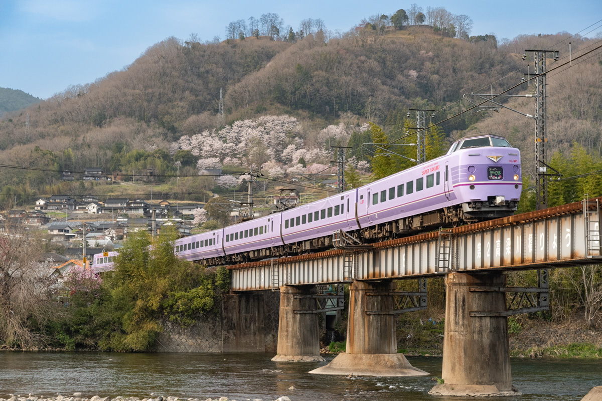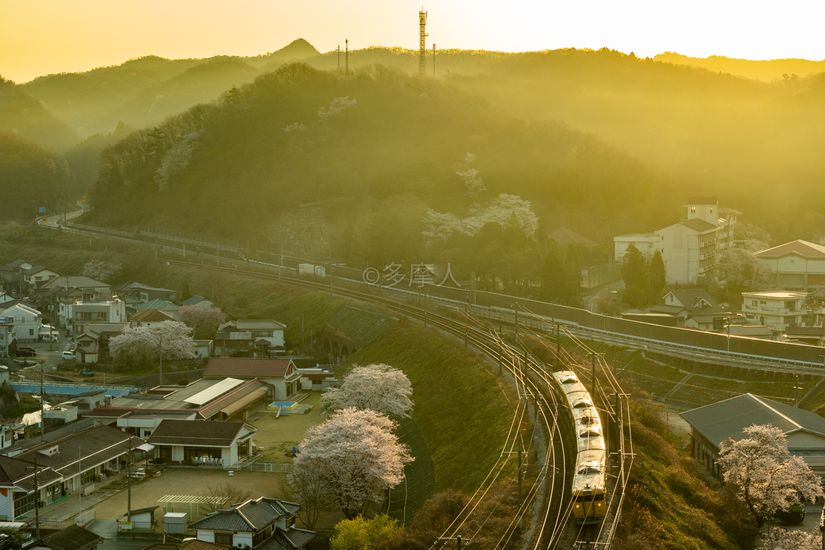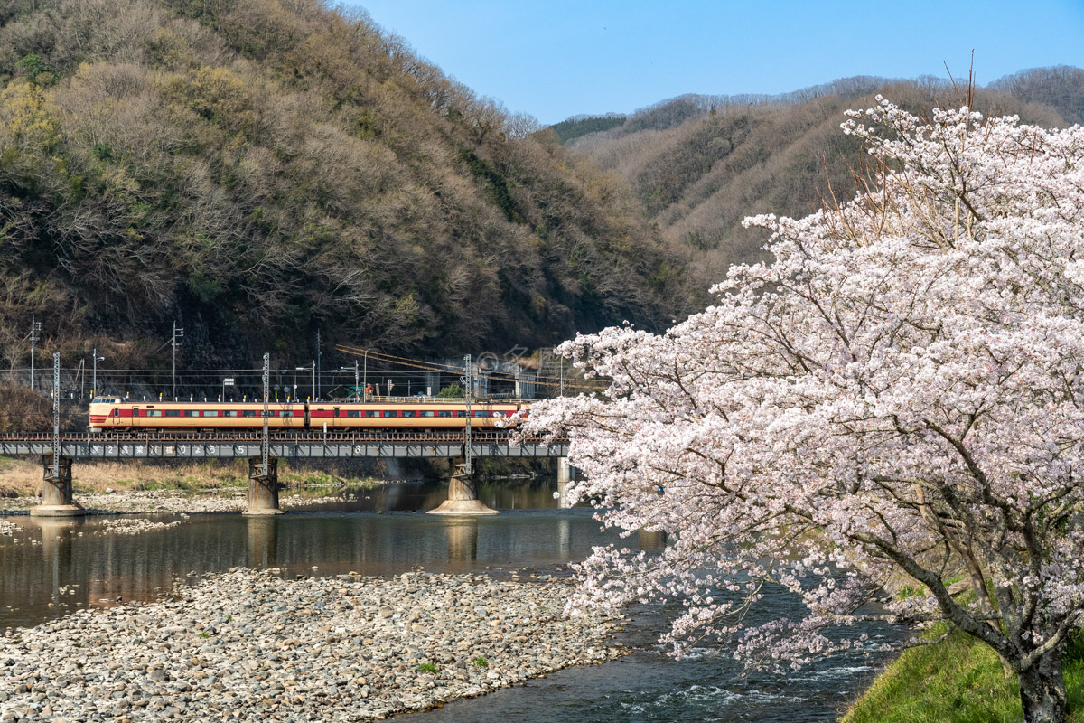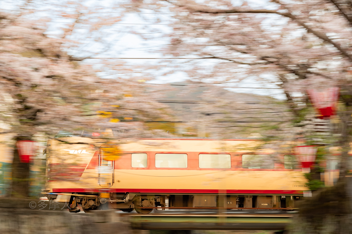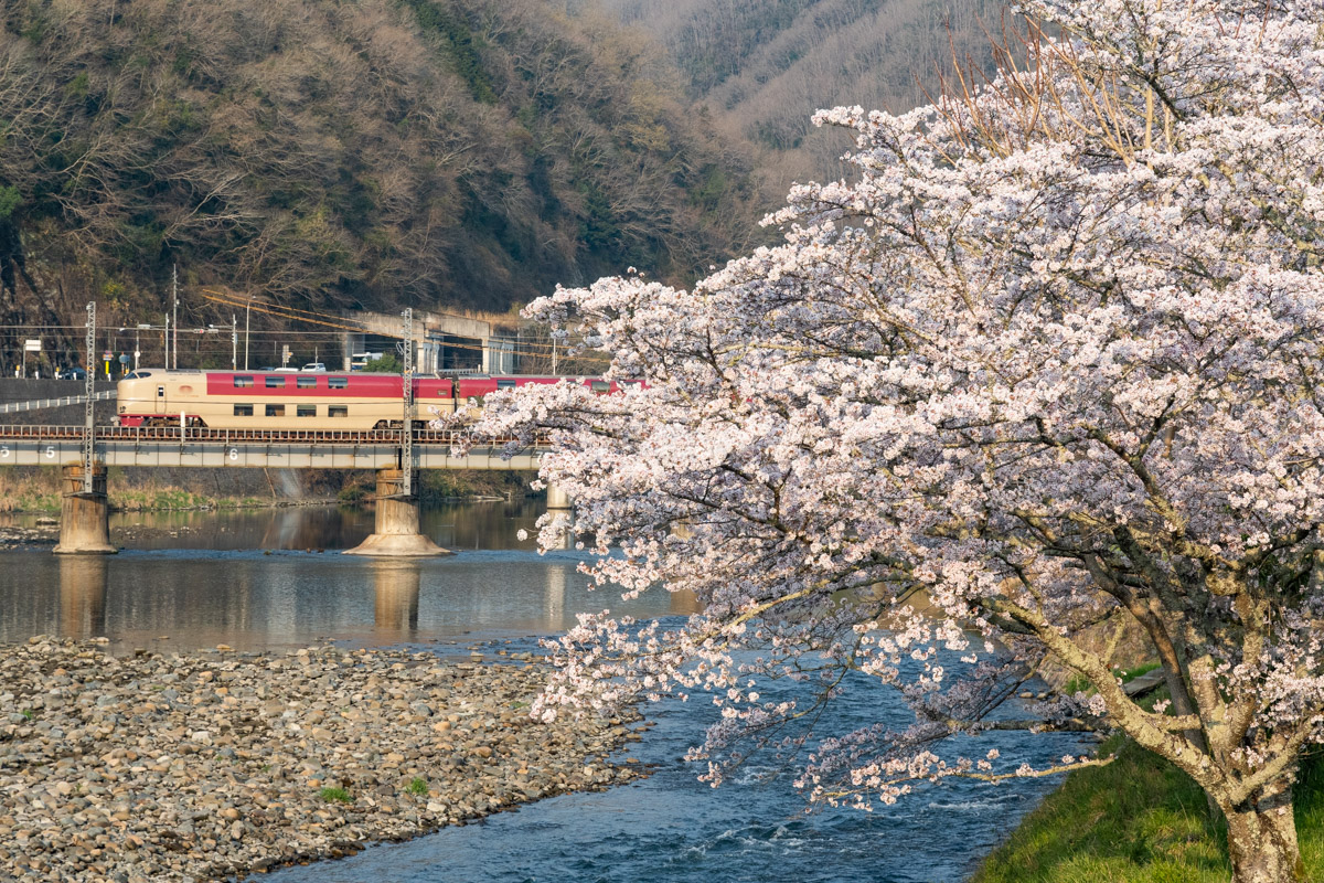 桜×国鉄色、誰かこの構図で流し撮りしてないかな。おすすめしたい構図。