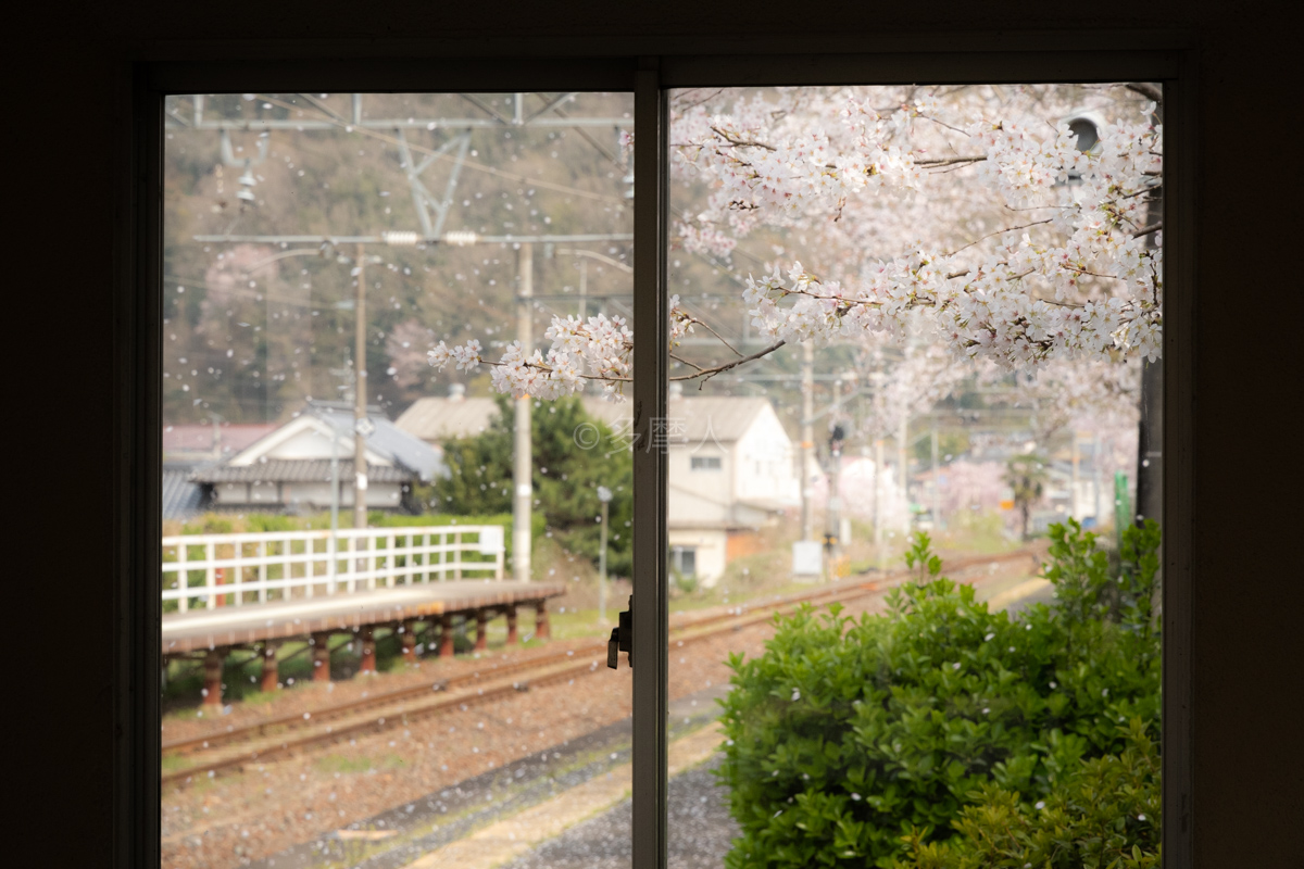 木野山ではスナップ撮影に徹するも、桜吹雪はタイミングが難しい。
