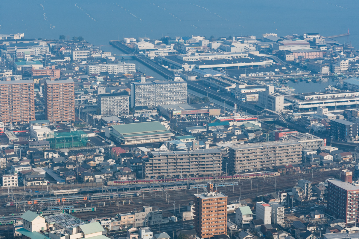 高松車両所から高松駅まで線路がよく見える。