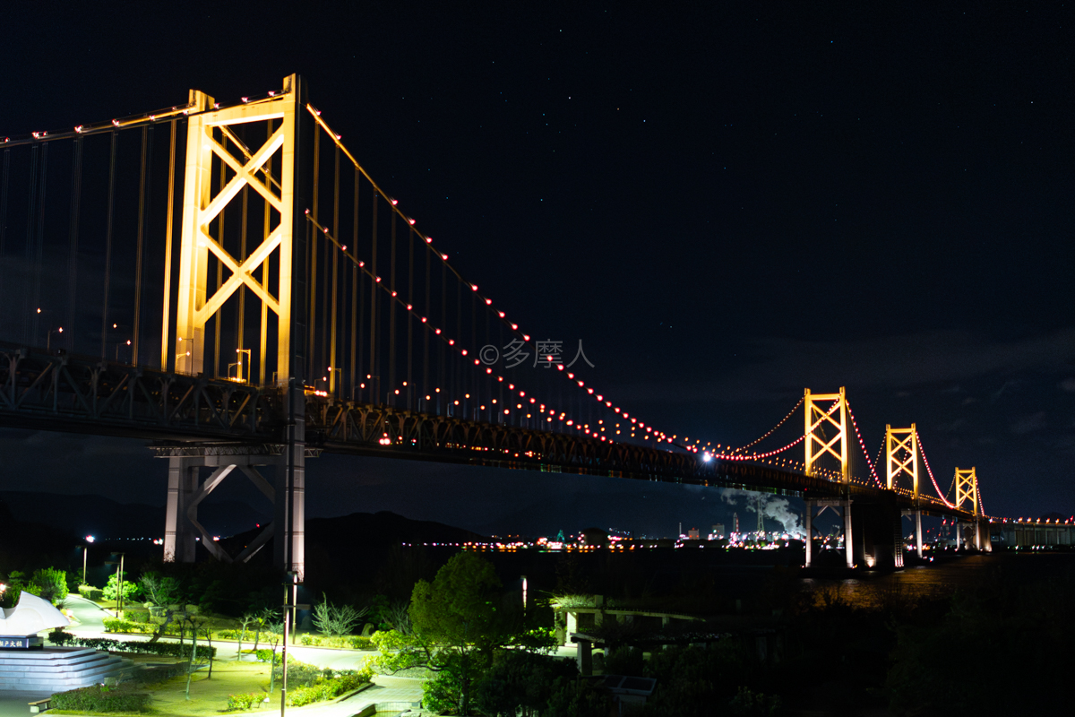 元旦だけ朝7時までライトアップの瀬戸大橋ですが、