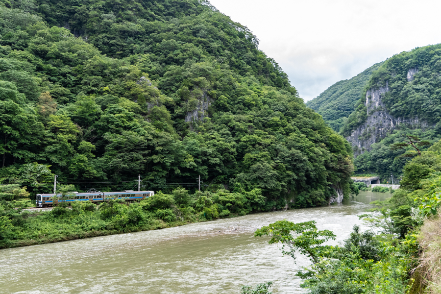 単線と複線が入り交じるとか国道と川と並走するとか切り立った崖があって平地が少ないとか。