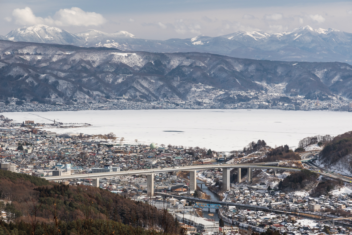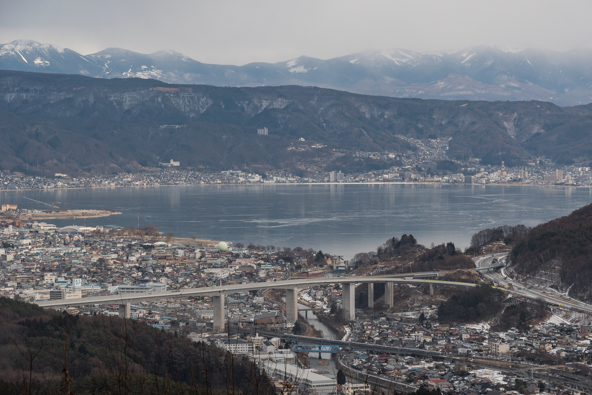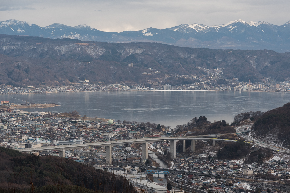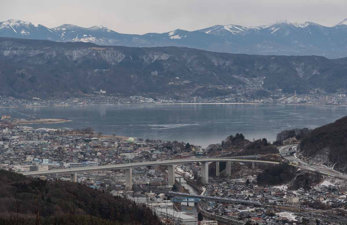 茅野から岡谷へ行き,雪山から俯瞰.